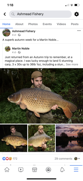 Martyn Skoyles landed the two biggest mirrors within an hour of each other and then followed these up with commons of 36+ and 32+. Martin Noble landed five carp up.to 36+, in a session that included three thirties and last week the Long Common was caught along with two other thirty plus commons.