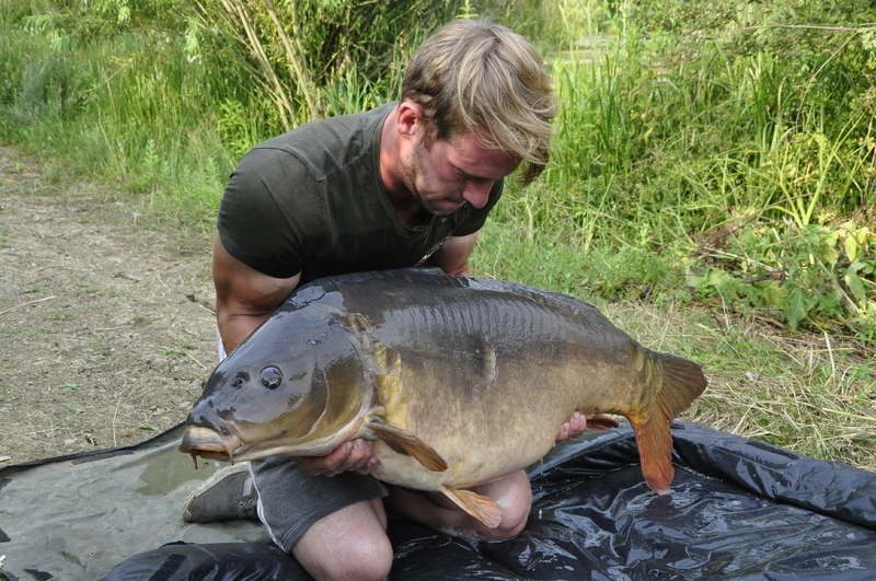 Single Scale at 55lb, landed by Jake. Patch, the fully-scaled mirror landed by Jimmy. Opal landed by Ed. Despite the blazing temperatures, three of Ashmead's finest mirrors were landed last week... All second generation Ashmead carp, spawned in the wetland and grown on naturally in the rich Ashmead environment over the past twenty to thirty years.