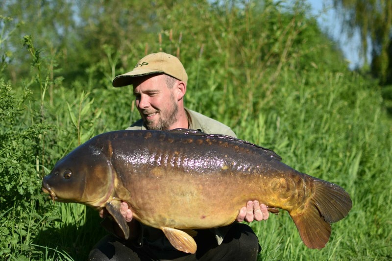 Single Scale at 55lb, landed by Jake. Patch, the fully-scaled mirror landed by Jimmy. Opal landed by Ed. Despite the blazing temperatures, three of Ashmead's finest mirrors were landed last week... All second generation Ashmead carp, spawned in the wetland and grown on naturally in the rich Ashmead environment over the past twenty to thirty years.