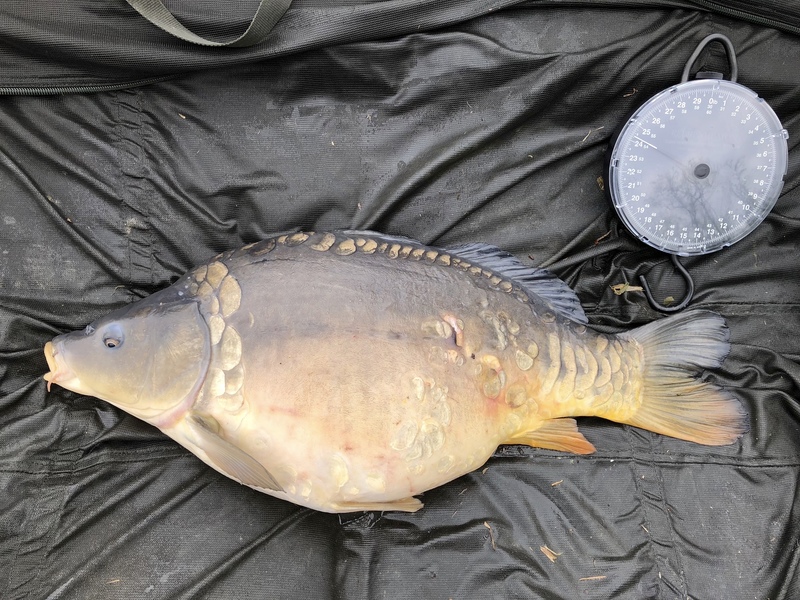 The highlight for me though was the capture of a fish called 'The Tench' after Terry Hearn who was the first captor of the carp in 2014, when it weighed 8lb. This time it broke the twenty barrier for the first time at 20.08. One of many young mirrors that are spawned naturally in the Ashmead wetland and are growing on to be Ashmead's future...