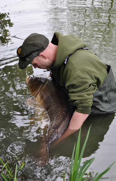 Single Scale seems to have been lying up all winter and has now gone a bit of a binge.... She was caught for the second time in as many weeks by Kentish Stu, after a bit of thoughtful angling. Stu thought she would be sulking in the deeper waters of Tom's pond after her recent capture and it turned out he was right! She was just one of more than twenty fish in a week that saw several thirties landed, as well as the immaculate JC at over 40lb, which was caught on the last morning by Colin Tubb.